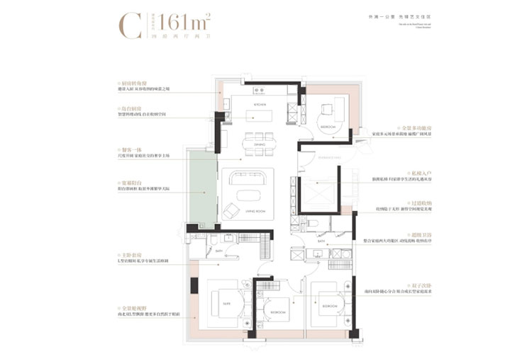 1栋24层住宅、3栋 31-32层住宅,建筑面积124平三房两厅两卫、165平四房两厅两卫、190平四房两厅三卫、240平四房两厅三卫,均价:14.83万/平,总价1600万起