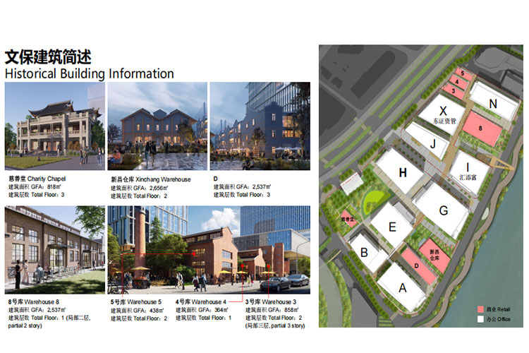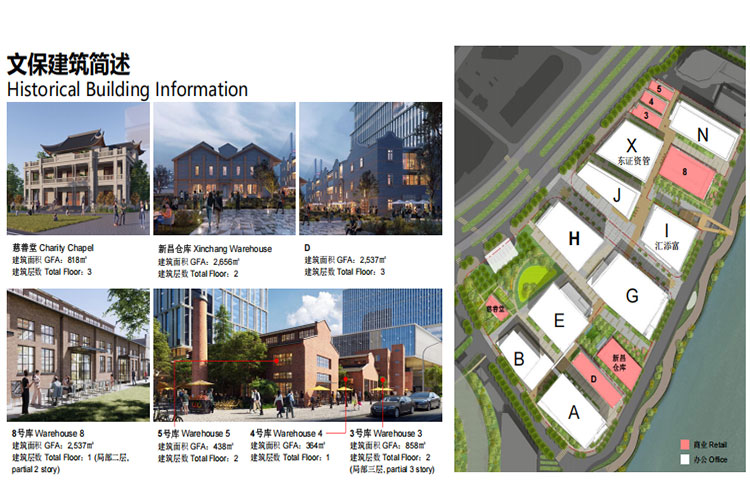 南外滩金融中心由外滩投资集团和上海地产集团、锦江集团联手打造,将成为国内工业遗址保护和改造项目的又一个标杆。总建筑面积约284,359平方米,其中新建办公楼273,170平方米,保留历史建筑11,189平方米。分南北区地块开发,南区(327地块):A/B/D/E/G/H六栋新楼+历史建筑,总计约181,792平方米,北区(326地块):J/K/N/L四栋新楼+历史建筑,总计约102,567平方米。新建楼宇首层设精品店、餐厅、咖啡馆等商业;历史建筑将改造为夜市、美食广场、展览、小型博物馆等特色商业目的地,为行人带来无缝衔接的购物体验及更多以科技为导向的商业用途。