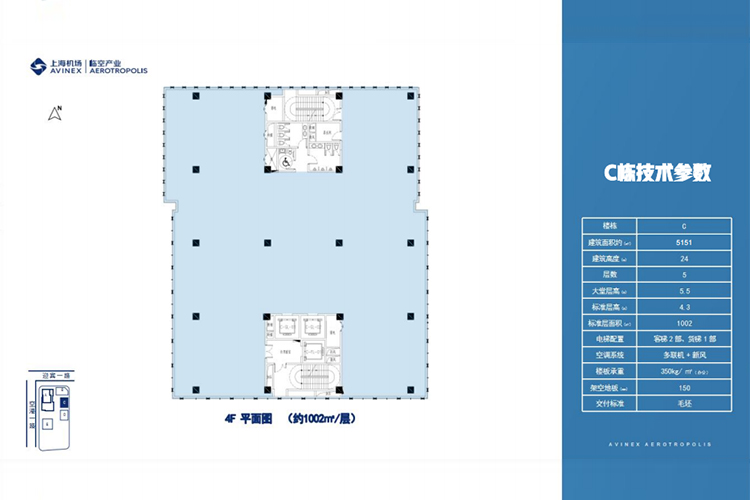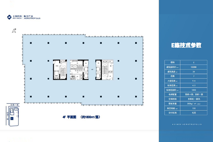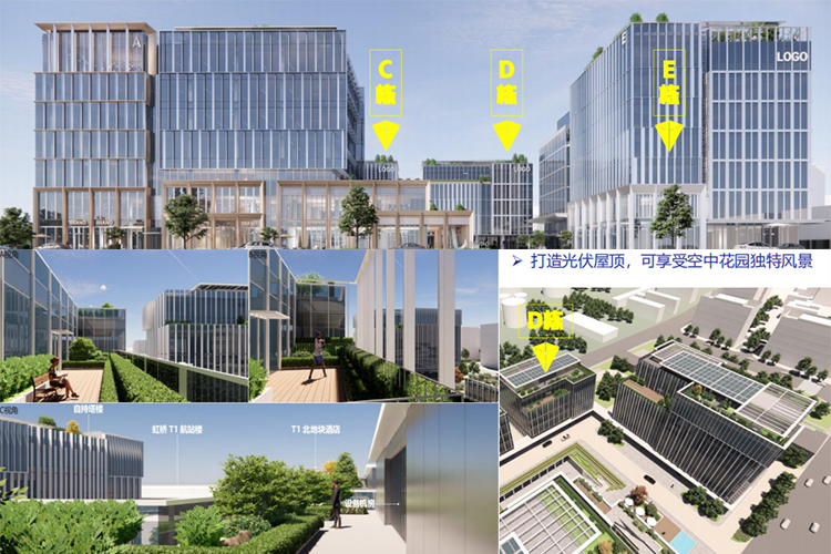 备注:独栋冠名权、双面 LOGO 位、光伏屋顶、预留燃气接口、空调多联机 + 新风系统。楼板承重350kg/平米,架空地板150mm。电梯配置B/C/D栋各客梯2部、货梯1部;E栋客梯4部、货梯1部。