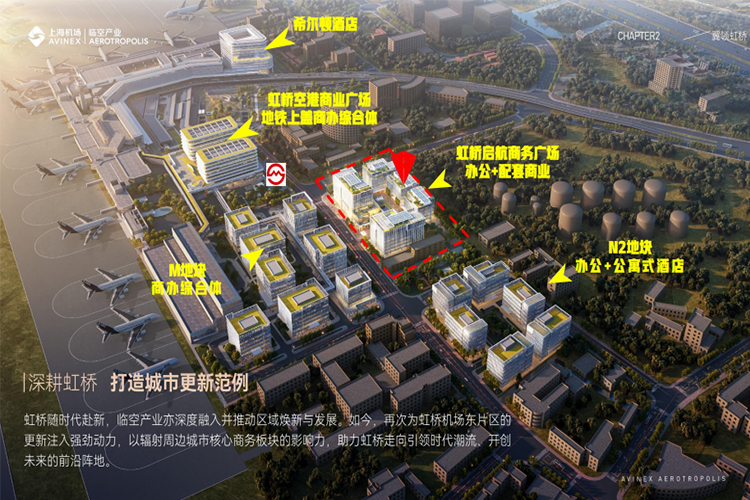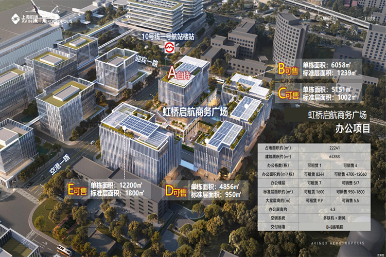 启航商务广场项目位于虹桥机场东片区航站区,地处虹桥机场迎宾一路与空港一路口,属于虹桥商务区,深耕虹桥,打造城市更新范例,聚焦航空产业、长三角总部经济、日韩 / 港澳台商旅、在线新经济等产业。