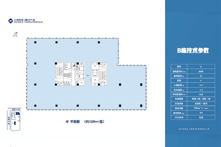 建筑高度B/C/D为24米(5层),E为34米(7层),独栋面积B栋约6058平米、C栋约5151平米、D栋约4856平米、E栋约12200平米,大堂层高B/C/D为5.5米,E栋大堂层高9.4米,标准层高4.3米,标准层面积B栋1239平米,C栋1002平米,D栋950平米,E栋1800平米,均价4万/平米,总价1.95亿起(底价私聊)