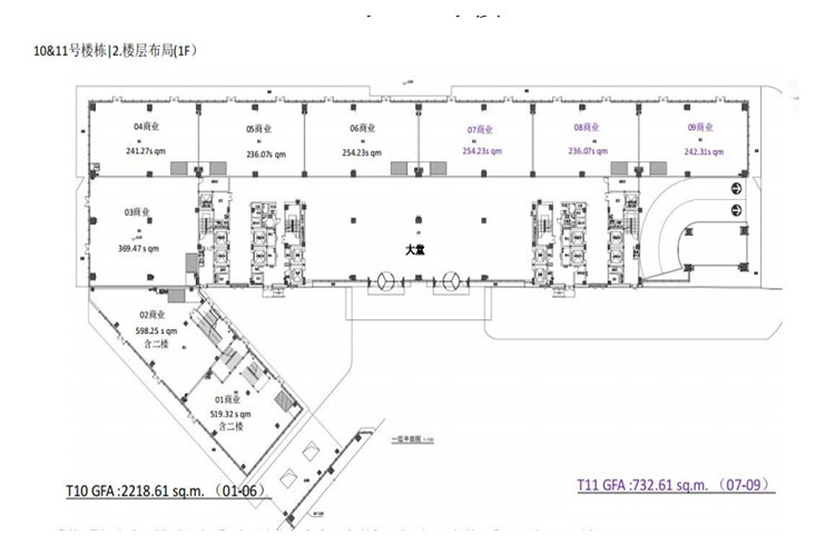 11号办公楼,共9层,总建筑面积15410平米,1楼商业(通燃气),2-9层办公,标准层约2160平米,标准层高4.2米,每层约5本产证(总36本产证),附赠面积约400平约10米挑高大堂(可做2层)、顶楼1700平左右(挑高约10米可做2层,双露台)